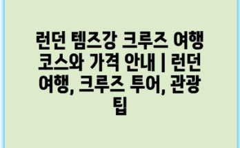런던 템즈강 크루즈 여행 코스와 가격 안내 | 런던 여행, 크루즈 투어, 관광 팁 런던의 아름다운 경치를 감상할 수 있는 템즈강 크루즈는 여행자들에게 인기 있는 방법입니다. 크루즈는 주로 웨스트민스터에서 시작해 …