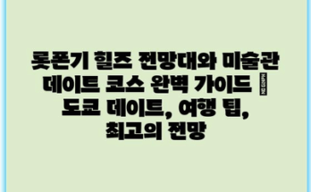 롯폰기 힐즈 전망대와 미술관 데이트 코스 완벽 가이드 | 도쿄 데이트, 여행 팁, 최고의 전망 도쿄에서의 데이트는 항상 특별한 기억으로 남습니다. 그 중에서도 롯폰기 힐즈는 꼭 방문해야 할 장소입니다. 먼저, …