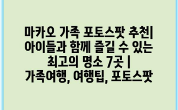 마카오는 가족과 함께하는 여행에 최적의 장소입니다. 여기서는 아이들과 함께 즐길 수 있는 최고의 명소 7곳을 소개합니다. 첫 번째로 추천하는 곳은 세나도 광장입니다. 이곳의 독특한 타일 문양과 아름다운 건축물은 훌륭한 포토스팟입니다. …