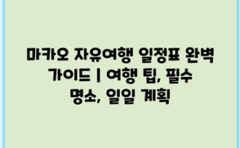 마카오 자유여행 일정표 완벽 가이드 | 여행 팁, 필수 명소, 일일 계획 마카오는 독특한 문화와 역사가 어우러진 매력적인 여행지입니다. 여행을 계획하면서 꼭 알아두어야 할 일정과 팁을 소개합니다. 먼저, 마카오의 필수 …
