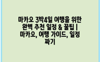 마카오 3박4일 여행을 위한 완벽 추천 일정 & 꿀팁을 소개합니다. 마카오는 매력적인 문화와 카지노, 그리고 아름다운 경관으로 유명한 여행지입니다. 첫째 날, 도착 후 가장 먼저 세나도 광장을 방문하고, 그 주변의 …