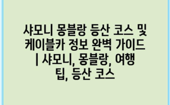 샤모니 몽블랑 등산 코스 및 케이블카 정보 완벽 가이드 | 샤모니, 몽블랑, 여행 팁, 등산 코스 프랑스의 아름다운 알프스 산맥에 위치한 샤모니는 세계적으로 유명한 몽블랑의 출발점입니다. 이곳의 등산 코스는 다양한 …