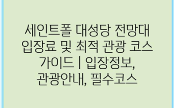 세인트폴 대성당 전망대 입장료 및 최적 관광 코스 가이드 | 입장정보, 관광안내, 필수코스 Read More세인트폴 대성당 전망대는 런던의 상징적인 명소 중 하나로, 그곳에서 바라보는 아름다운 경치는 여행객들에게 잊을 수 없는 경험을 선사합니다. 입장료는 성인 기준 약 20파운드이며, 학생과 노인에게는 할인 혜택이 있습니다. 어린이는 무료로 …