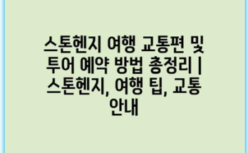 스톤헨지 여행 교통편 및 투어 예약 방법 총정리 | 스톤헨지, 여행 팁, 교통 안내 스톤헨지는 영국에서 가장 거대한 고대 유적 중 하나로, 많은 여행자들이 찾는 인기 명소입니다. 여행을 계획하면서 먼저 …