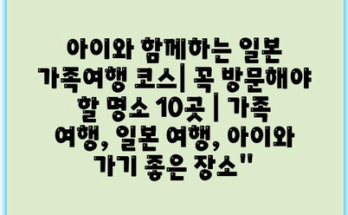 아이와 함께하는 일본 가족여행 코스| 꼭 방문해야 할 명소 10곳 | 가족 여행, 일본 여행, 아이와 가기 좋은 장소 일본은 가족 여행에 이상적인 장소로, 아이들이 즐길 수 있는 다양한 명소가 …