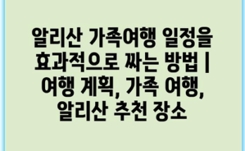 알리산 가족여행 일정을 효과적으로 짜는 방법 | 여행 계획, 가족 여행, 알리산 추천 장소 가족과 함께하는 여행은 기억에 남는 소중한 시간입니다. 알리산은 아름다운 자연경관과 다양한 액티비티로 가족 여행에 적합한 장소입니다. …