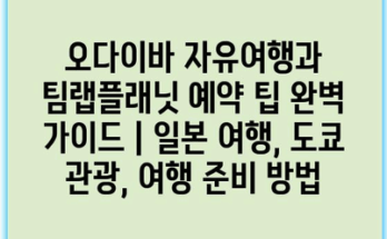 오다이바 자유여행과 팀랩플래닛 예약 팁 완벽 가이드 | 일본 여행, 도쿄 관광, 여행 준비 방법 오다이바는 도쿄의 최신 관광지로, 쇼핑, 맛집, 그리고 다양한 엔터테인먼트를 즐길 수 있는 매력적인 곳입니다. 여행 …