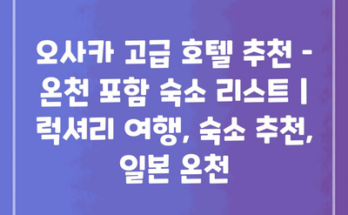 오사카 고급 호텔 추천 – 온천 포함 숙소 리스트 | 럭셔리 여행, 숙소 추천, 일본 온천 일본에서의 여행은 그 자체로 특별하지만, 오사카에서의 고급 숙소와 온천이 결합된다면 더욱 잊지 못할 경험이 …