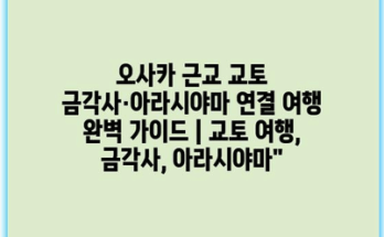 오사카 근교 교토 금각사·아라시야마 연결 여행 완벽 가이드 | 교토 여행, 금각사, 아라시야마 교토는 일본의 전통 문화와 자연 경관이 어우러진 매력적인 도시입니다. 교토의 대표적인 관광지 중 하나인 금각사(킨카쿠지)는 절의 아름다움과 …