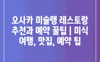 오사카 미슐랭 레스토랑 추천과 예약 꿀팁 | 미식 여행, 맛집, 예약 팁 오사카는 음식의 도시로 유명하며, 미슐랭 가이드에서도 다수의 우수한 레스토랑이 소개되고 있습니다. 가이세키 요리부터 스시, 고기 전문점까지 다양하게 즐길 …