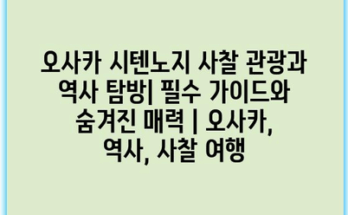 오사카 시텐노지 사찰 관광과 역사 탐방| 필수 가이드와 숨겨진 매력 | 오사카, 역사, 사찰 여행