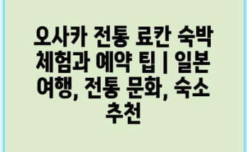 오사카 전통 료칸 숙박 체험과 예약 팁 | 일본 여행, 전통 문화, 숙소 추천 일본의 전통 문화와 현대적인 매력이 공존하는 오사카에서 료칸에 머물며 특별한 경험을 할 수 있습니다. 료칸은 일본의 …