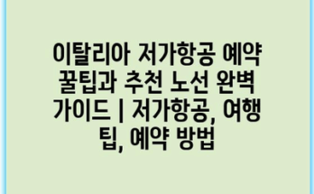 이탈리아 저가항공 예약 꿀팁과 추천 노선 완벽 가이드 | 저가항공, 여행 팁, 예약 방법에 대해 알아보겠습니다. 이탈리아 내에서 저렴하게 이동하기 위해서는 저가항공을 이용하는 것이 큰 도움이 됩니다. 다양한 항공사가 제공하는 …
