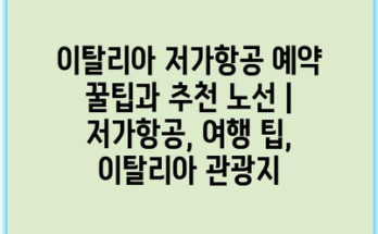 이탈리아 저가항공 예약 꿀팁과 추천 노선 | 저가항공, 여행 팁, 이탈리아 관광지 Read More이탈리아 저가항공 예약 꿀팁과 추천 노선 이탈리아를 여행하고 싶다면 저렴하고 편리한 저가항공을 이용하는 것이 좋습니다. 저가항공 예약의 첫 번째 꿀팁은 유연한 여행 날짜를 설정하는 것입니다. 주중 비행이 주말보다 저렴할 수 …