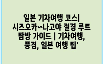 일본 기차여행 코스| 시즈오카~나고야 절경 루트 탐방 가이드 | 기차여행, 풍경, 일본 여행 팁 일본의 기차여행은 독특한 매력을 지니고 있습니다. 특히 시즈오카와 나고야를 잇는 경로는 아름다운 자연과 함께 전통적인 일본의 …
