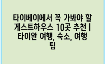 타이베이에서 꼭 가봐야 할 게스트하우스 10곳 추천 | 타이완 여행, 숙소, 여행 팁 타이베이는 다양한 문화와 맛이 공존하는 도시로, 여행자들에게 많은 선택지를 제공합니다. 그 중에서도 게스트하우스는 저렴한 가격과 편안한 분위기로 …