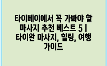 타이베이에서 꼭 가봐야 할 마사지 추천 베스트 5 | 타이완 마사지, 힐링, 여행 가이드 타이완의 수도인 타이베이는 아름다운 경치와 맛있는 음식 뿐만 아니라, 뛰어난 마사지 문화로도 유명합니다. 여행의 피로를 풀고 …