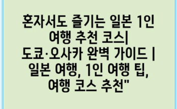 혼자서도 즐기는 일본 1인 여행 추천 코스| 도쿄·오사카 완벽 가이드 | 일본 여행, 1인 여행 팁, 여행 코스 추천”