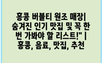 홍콩 버블티 원조 매장| 숨겨진 인기 맛집 및 꼭 한 번 가봐야 할 리스트! 홍콩을 방문한다면 버블티를 빼놓을 수 없습니다. 이곳은 그 시작점이자 진정한 버블티의 성지입니다. 특히, 원조 매장에서는 다양한 …