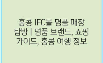 홍콩 IFC몰 명품 매장 탐방 | 명품 브랜드, 쇼핑 가이드, 홍콩 여행 정보 홍콩의 대표적인 쇼핑 명소인 IFC몰에서 쇼핑의 즐거움을 만끽해보세요! 세계적인 명품 브랜드가 한데 모인 이곳은 쇼핑뿐만 아니라 문화와 …