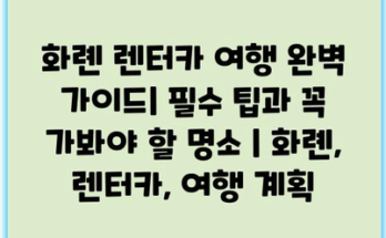 화롄 렌터카 여행 완벽 가이드| 필수 팁과 꼭 가봐야 할 명소 | 화롄, 렌터카, 여행 계획 화롄은 대만의 아름다운 자연경관과 독특한 문화가 어우러진 매력적인 도시입니다. 렌터카를 이용하면 편리함과 자유로운 이동을 …