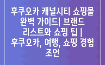 후쿠오카 캐널시티 쇼핑몰 완벽 가이드| 브랜드 리스트와 쇼핑 팁 | 후쿠오카, 여행, 쇼핑 경험 조언 Read More