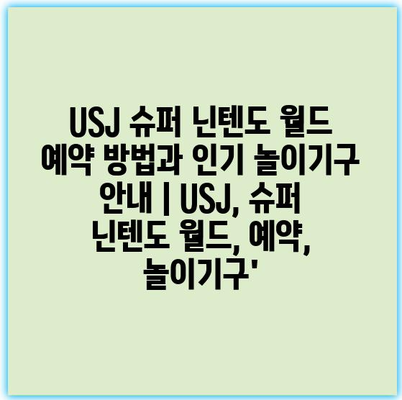 USJ 슈퍼 닌텐도 월드 예약 방법과 인기 놀이기구 안내 | USJ, 슈퍼 닌텐도 월드, 예약, 놀이기구’ 에 대해 자주 묻는 질문 TOP 5